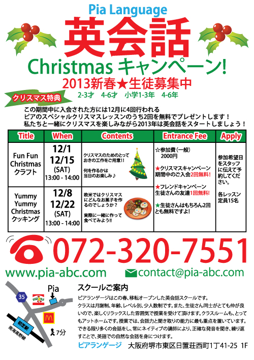 2013年新春からレッスンをスタートする新しい生徒さんにもクリスマスレッスンを2回無料でプレゼント!