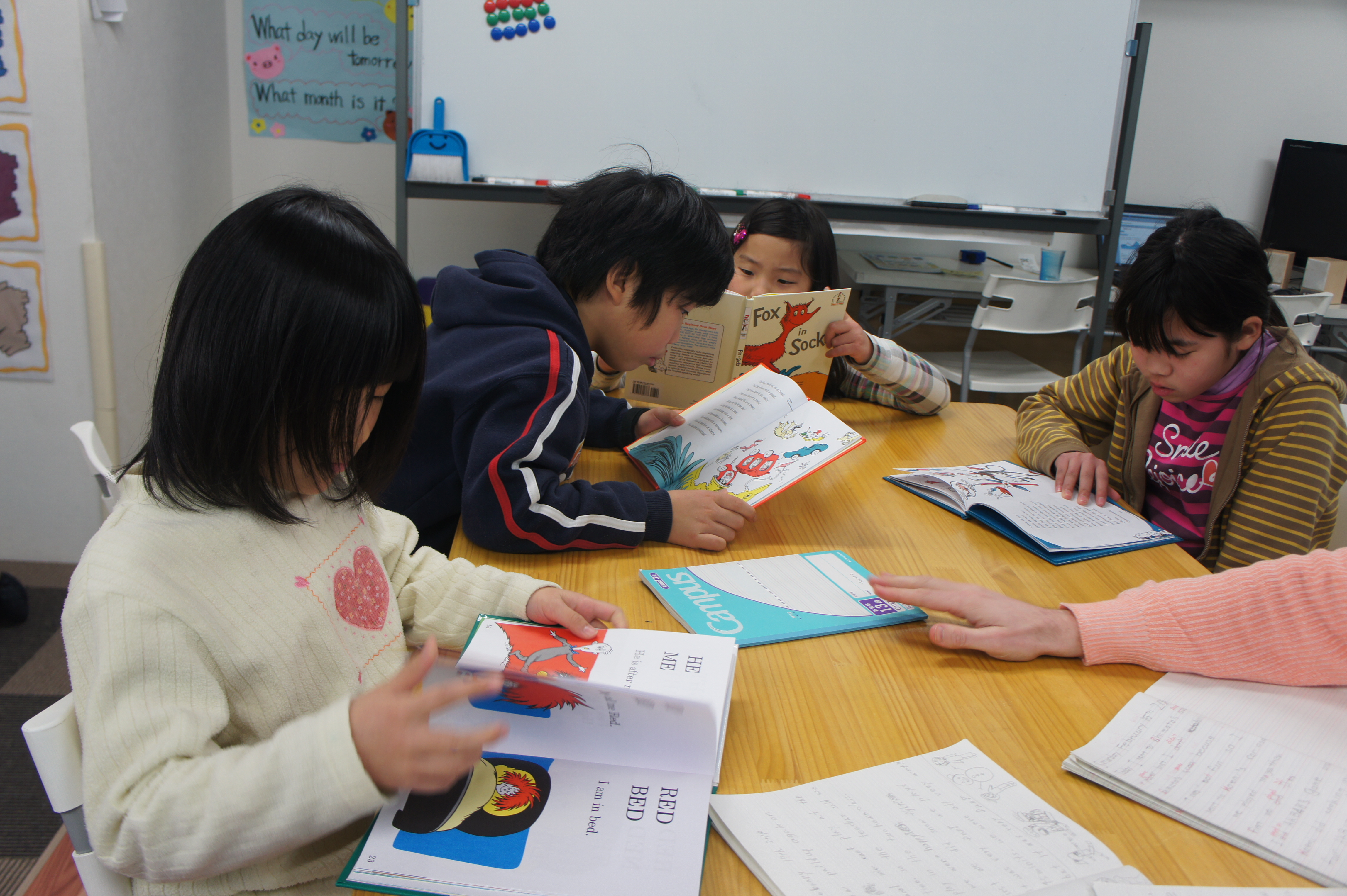 早くこられた生徒さんたちは各自で自分の好きな本を読んでいます。