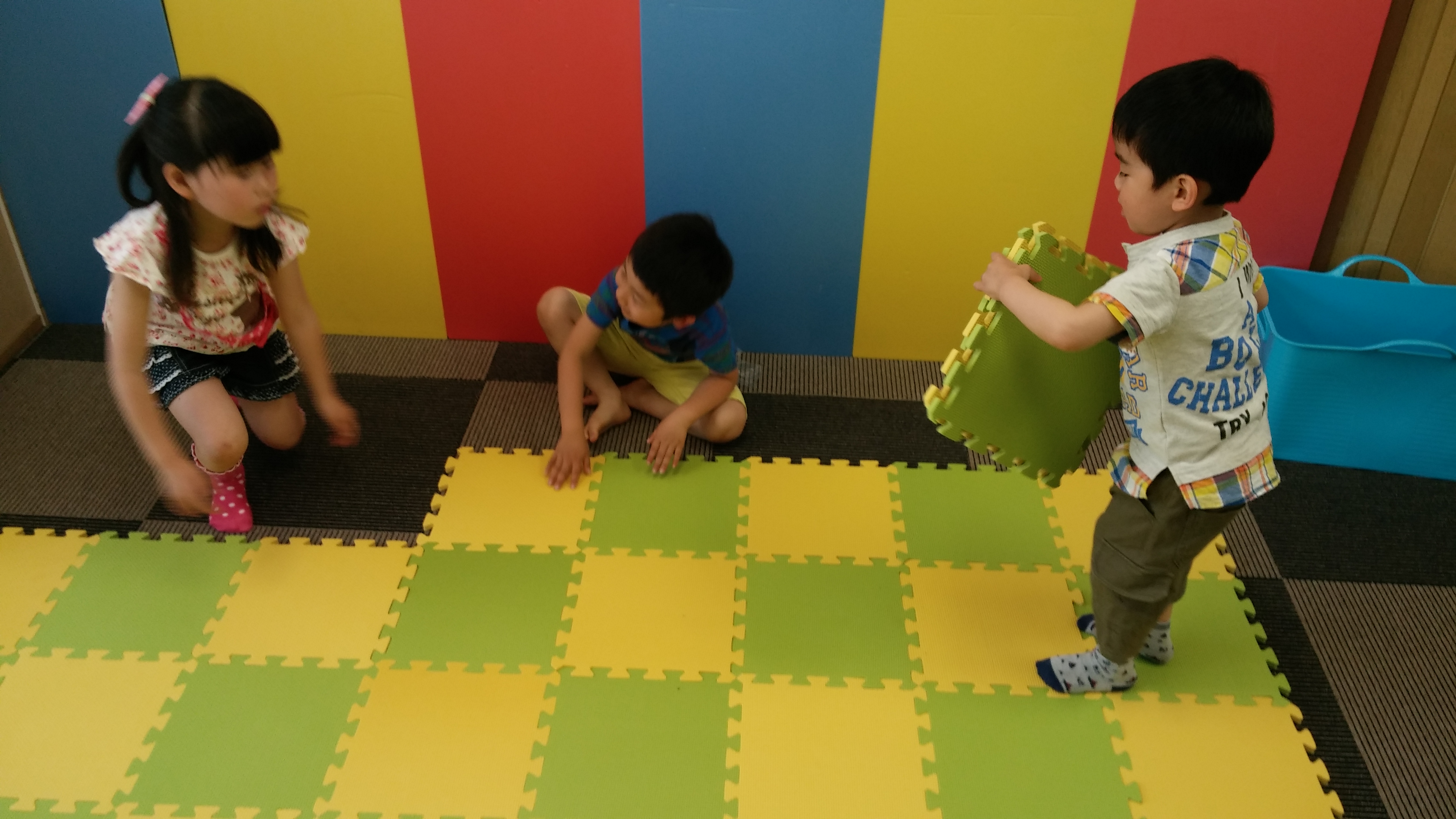 Tiny Learners Class(4-5歳児クラス)の生徒さんもマットを敷き詰めるのにお手伝いしてくれました。