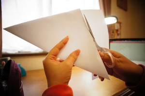 まずはA4の紙から、正方形を作ります。