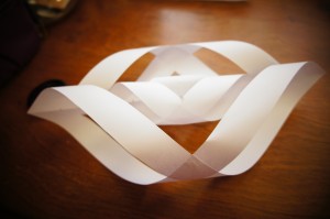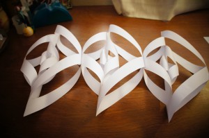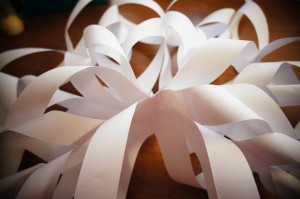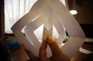 ひもで吊るす場合は、私はセロハンテープを貼って紙を強化してからパンチで穴を開けてひもを通しました。