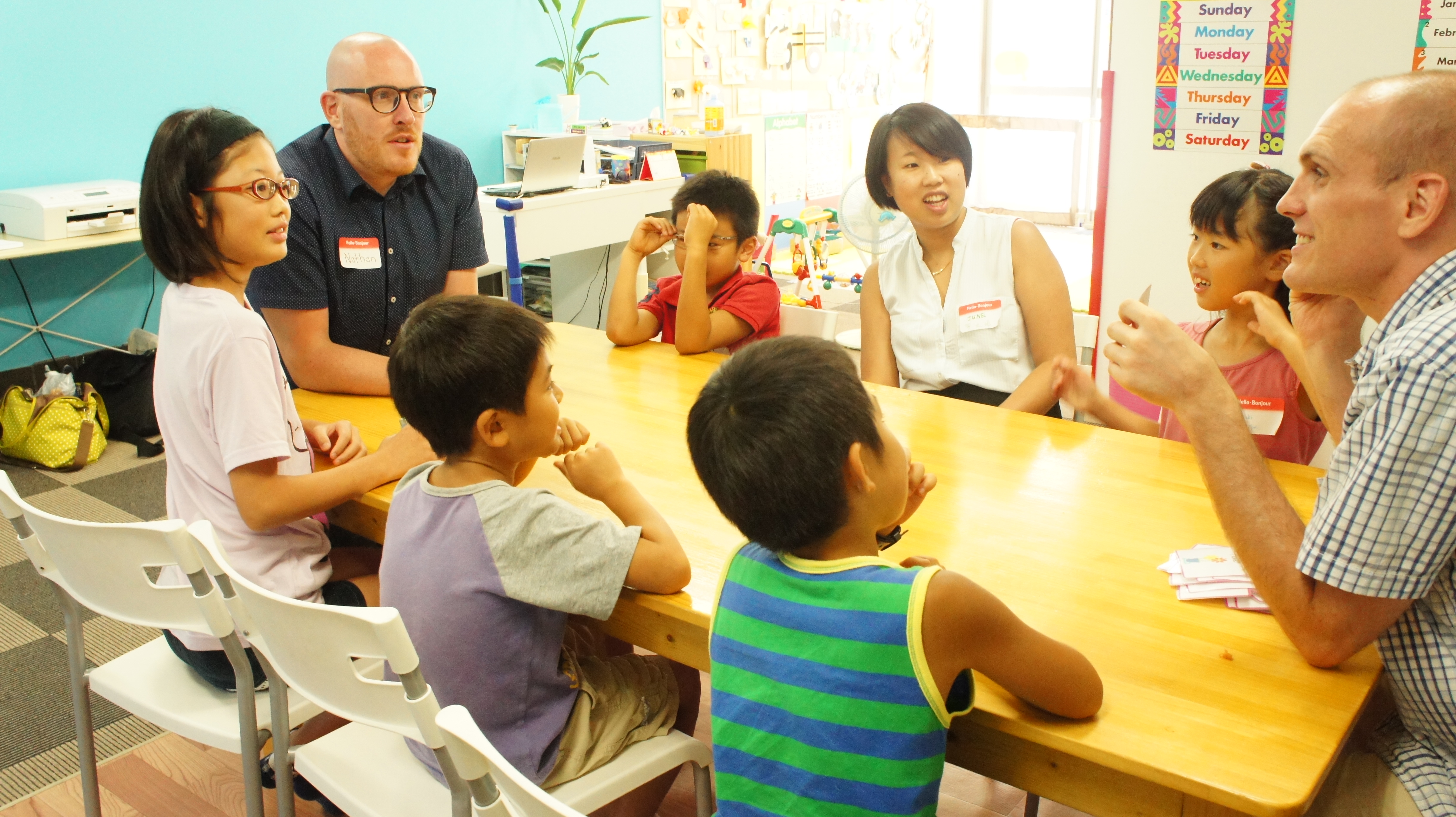 Summer Program ④ Posted on July 31, 2014 by Pia Language サマープログラムの4日目。 今日はなんと中国からのお客さんが!!! なんとPhilipの弟さんのNathanとその奥さんのJuneが来てくれました。 みんなどきどきしながら会話していましたよ。 生徒さんにとってはとてもいい機会だったと思います。 さあ、明日は最終日です。作品を持ち帰りますので30cm角の箱の作品が入るような紙袋 もしくはビニール袋をご持参ください。