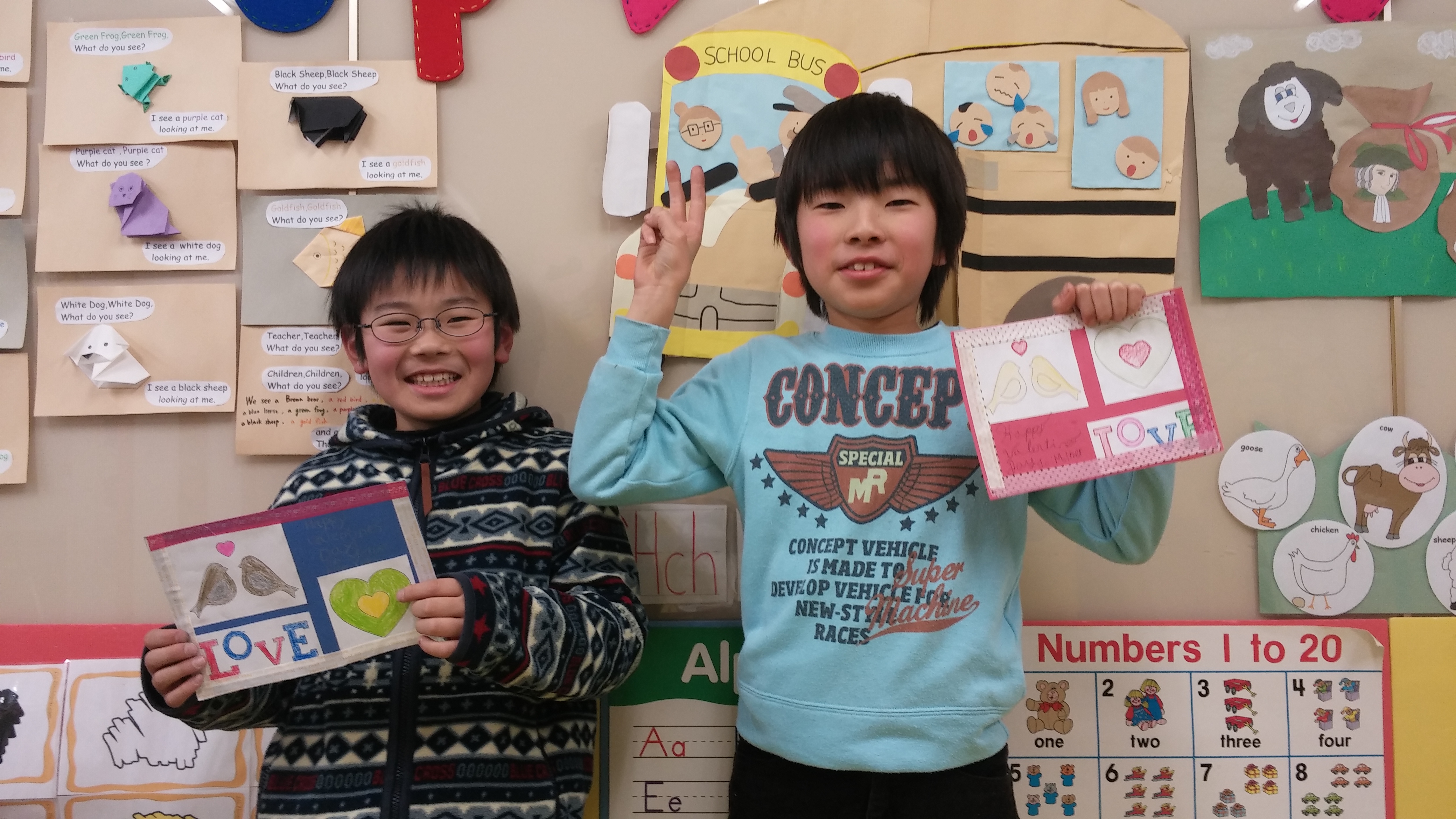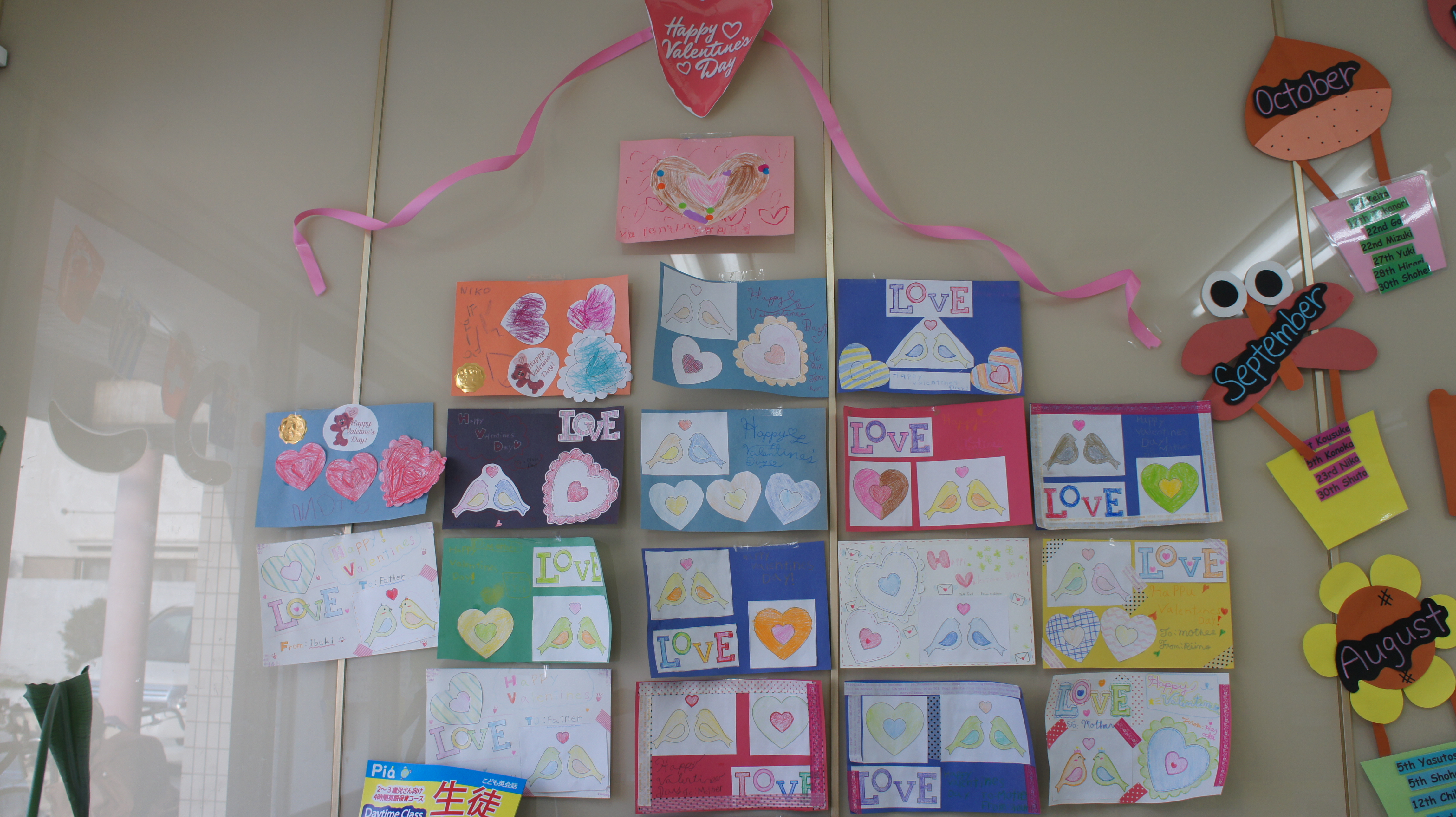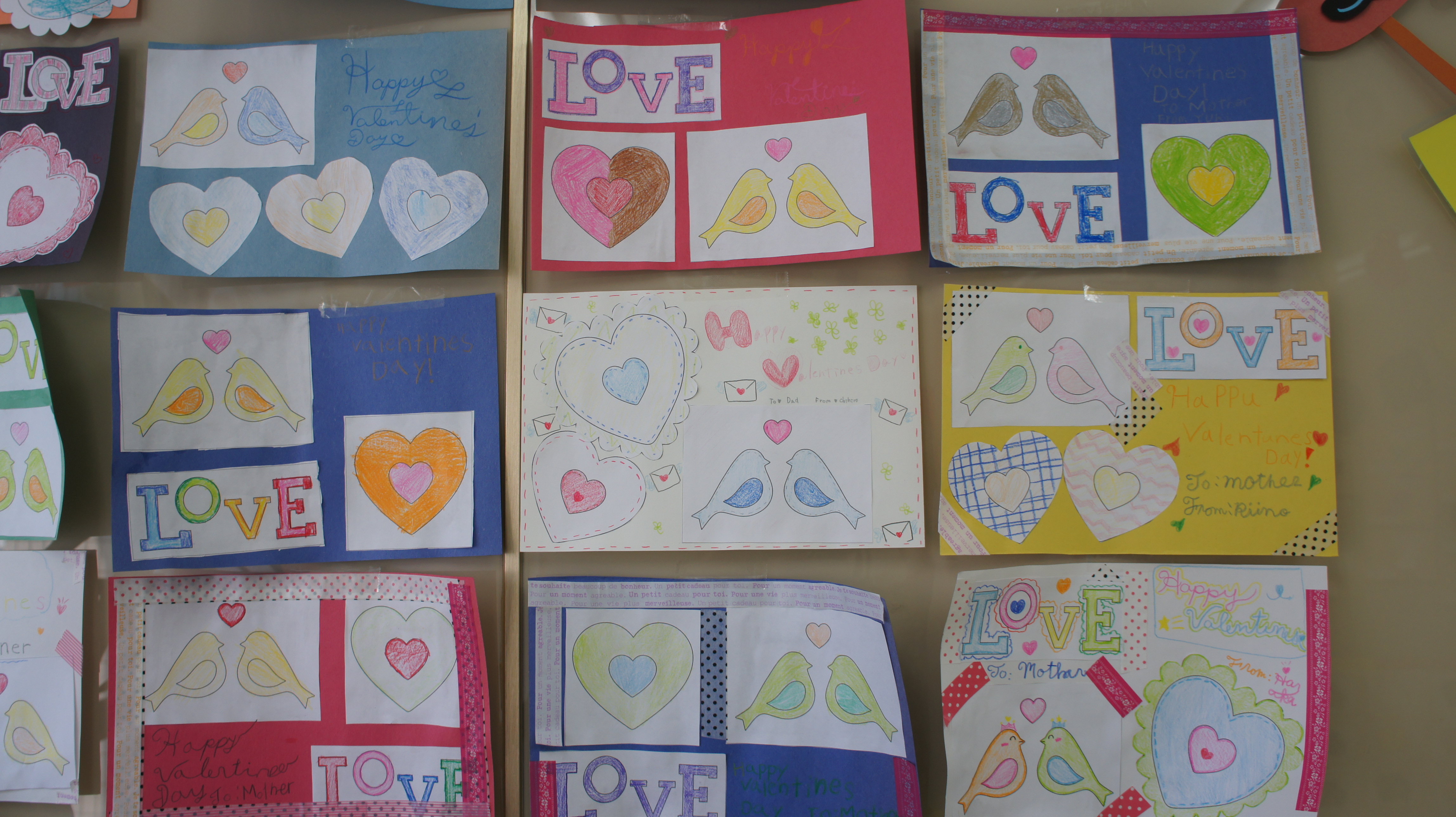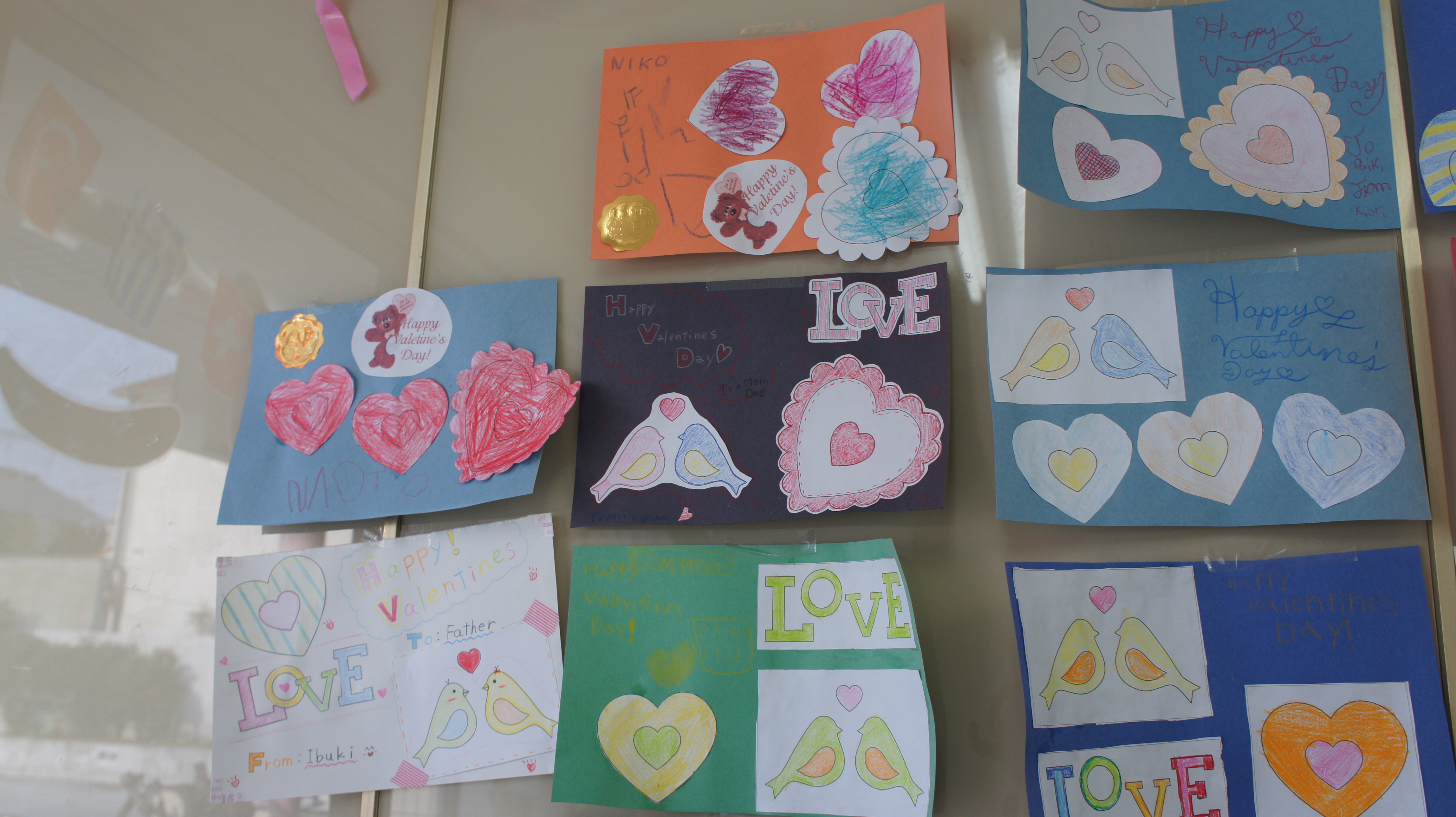 Valentine’s Day Craft ♪ Posted on February 16, 2015 by Pia Language 今月14日はバレンタインデー!!ということで第1弾としてバレンタインカードをつくりました。 とーっても素敵なカードが出来あがりましたよ。 メッセージの部分を英語の筆記体で挑戦された生徒さんもいましたよ。 なかなかの力作ぞろいです。